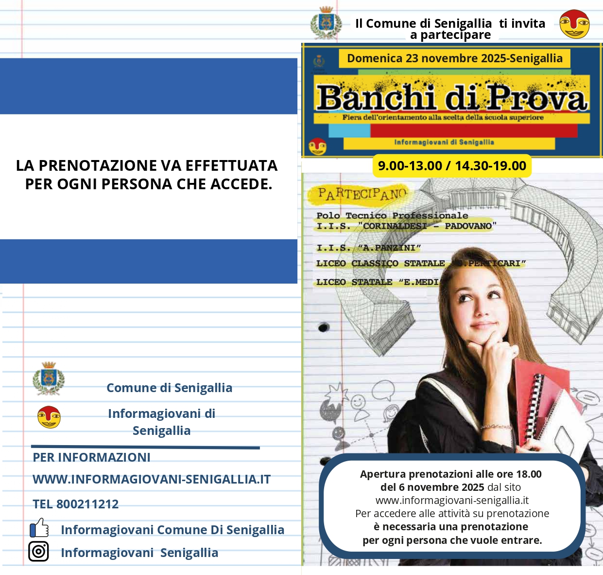 Torna per la sua 11° edizione BANCHI DI PROVA la fiera di orientamento per la scelta della scuola secondaria di secondo grado organizzata dall’Informagiovani del Comune Senigallia.